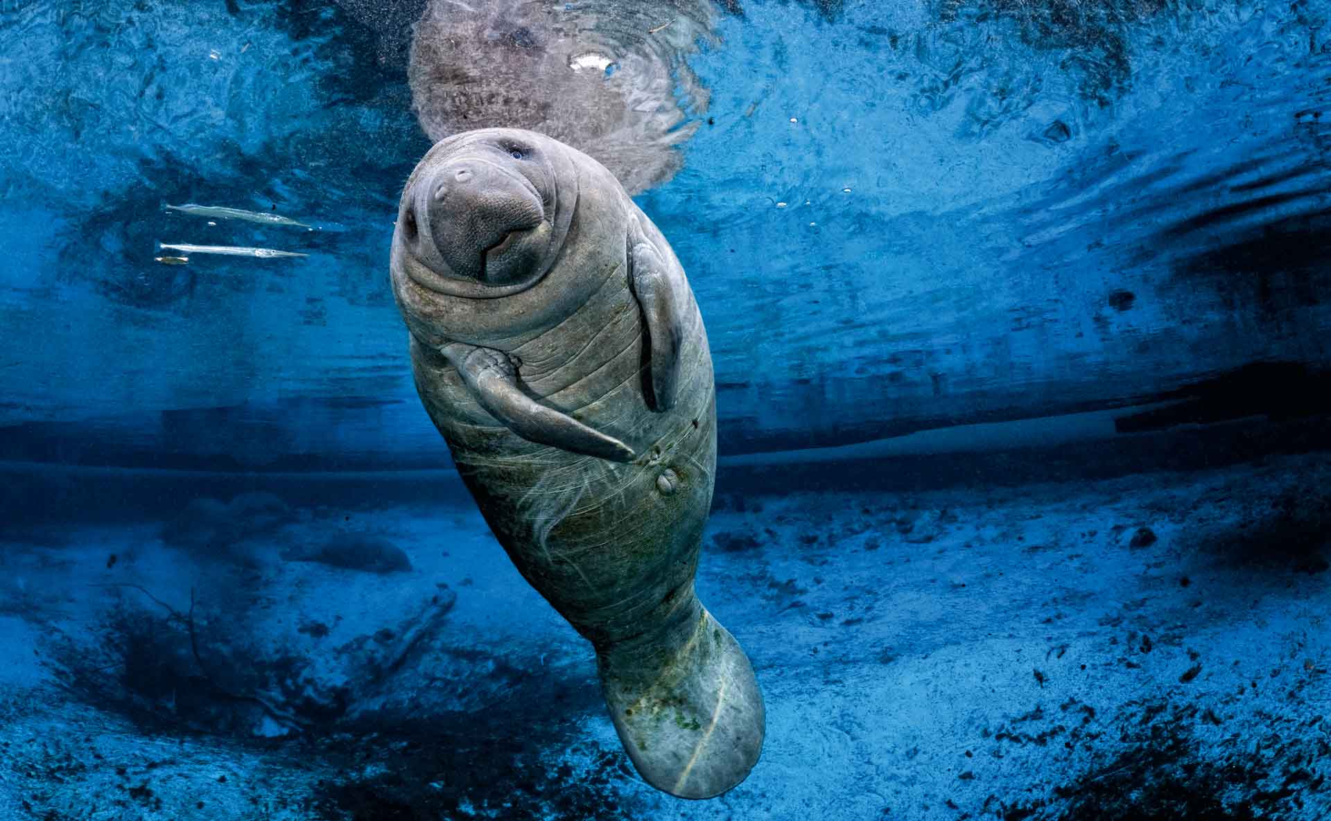 Lejos de la agresividad de las mortíferas sirenas, los manatíes del Caribe son animales pacíficos a los que les gusta llevar una vida tranquila pastando vegetación subacuática en aguas templadas. A pesar de su tamaño y su aspecto, no tienen grandes capas de grasa y necesitan que la temperatura del agua sea alta. Los adultos superan los 3 metros de longitud y pueden llegar a pesar 1600 kilos, pero, a diferencia de la mayor parte de los mamíferos marinos, si la temperatura del agua baja de 20 grados centígrados mueren.